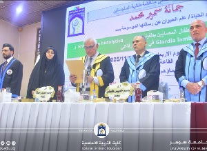 جرت بعون الله تعالى ، مناقشة رسالة الماجستير المقدمة من الطالبة جمانه سمير محمد ، والموسومة: " دراسة فسلجية ومناعية مقارنة للاطفال المصابين بطفيلي Entamoeba histolytica وGlardia Iamblia في مدينة الرفاعي